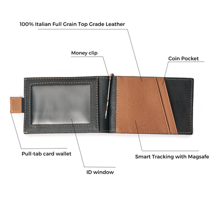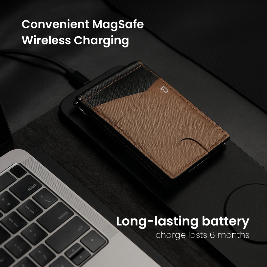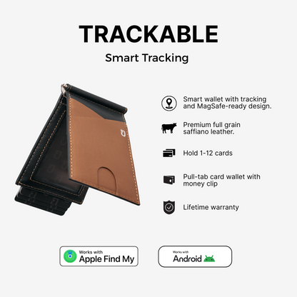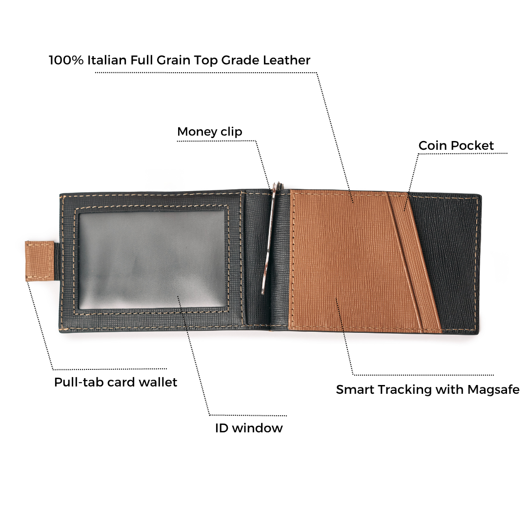 - Seamlessly integrated smart tracker (iOS & Android compatible) – for instant wallet location via smartphone and added peace of mind