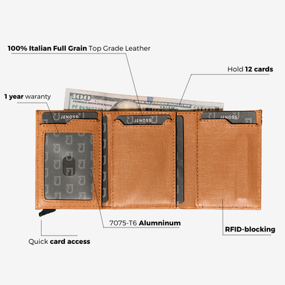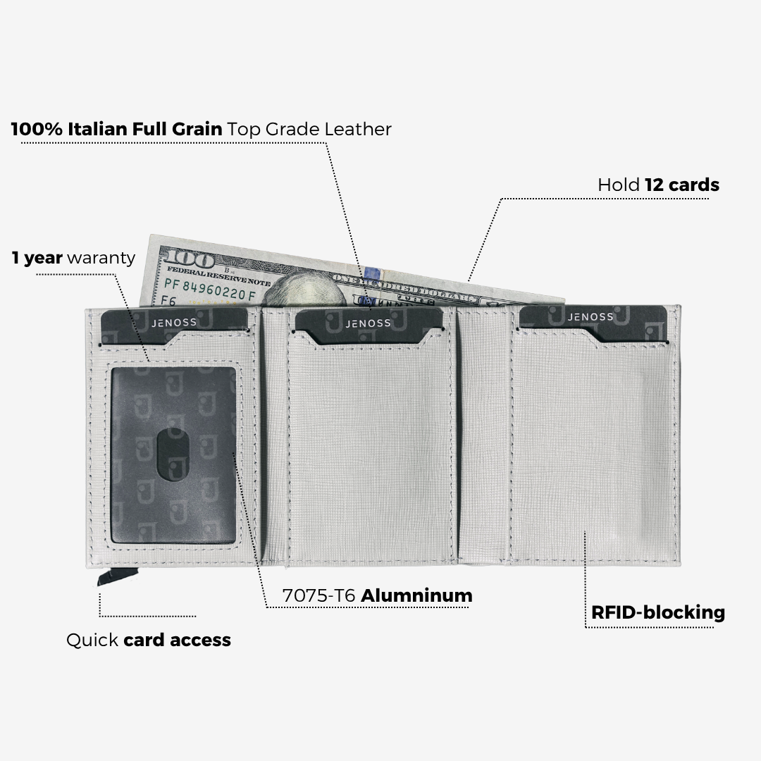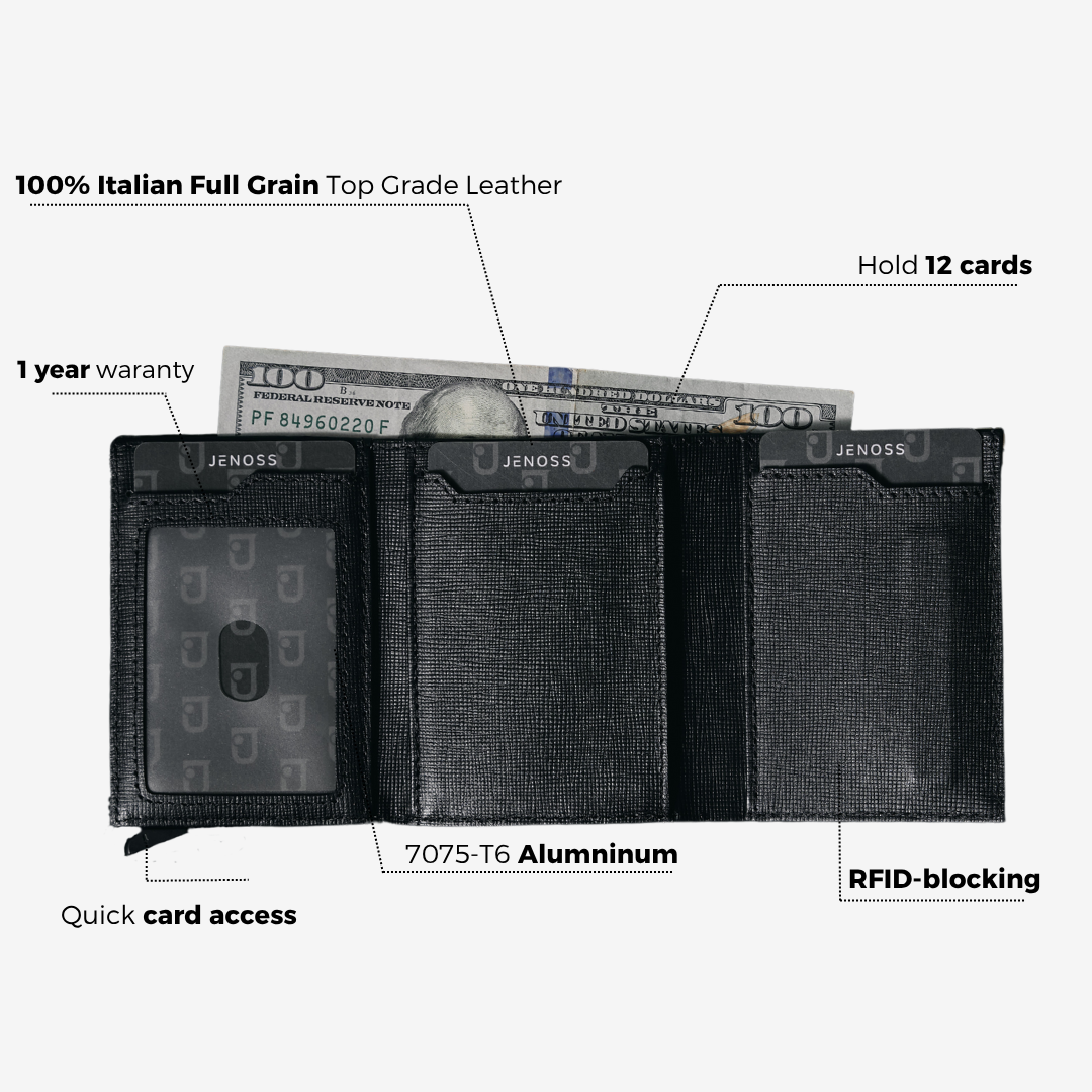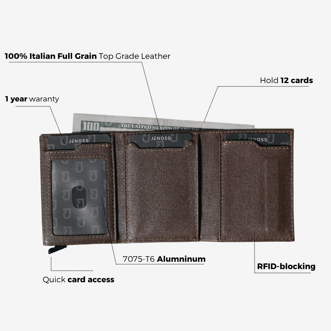 - Type: Trifold Wallet with Popup Card Holder (up to 6 cards) (bottom slider)
