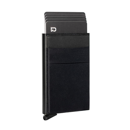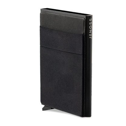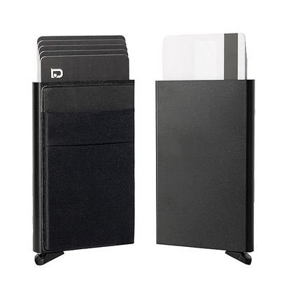 Introducing an ultra-thin, RFID-blocking wallet designed for the modern man, combining sleek style with smart security, it features a durable hard shell, quick-access bottom slide, and optional tracking compatibility, all in a compact form that fits effortlessly into any pocket.