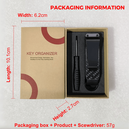 Dimensions: 10.1 D x 6.2 R x 2.7 C (cm) Net weight of the product: 36g Product weight with packaging box: 57g Storage: 4-6 keys Anti-scratch: Prevents damage and scratches to pocket contents Material: Space-grade 6061-T6 aluminum Storage +: Includes a detachable D ring for larger keys and car keys |