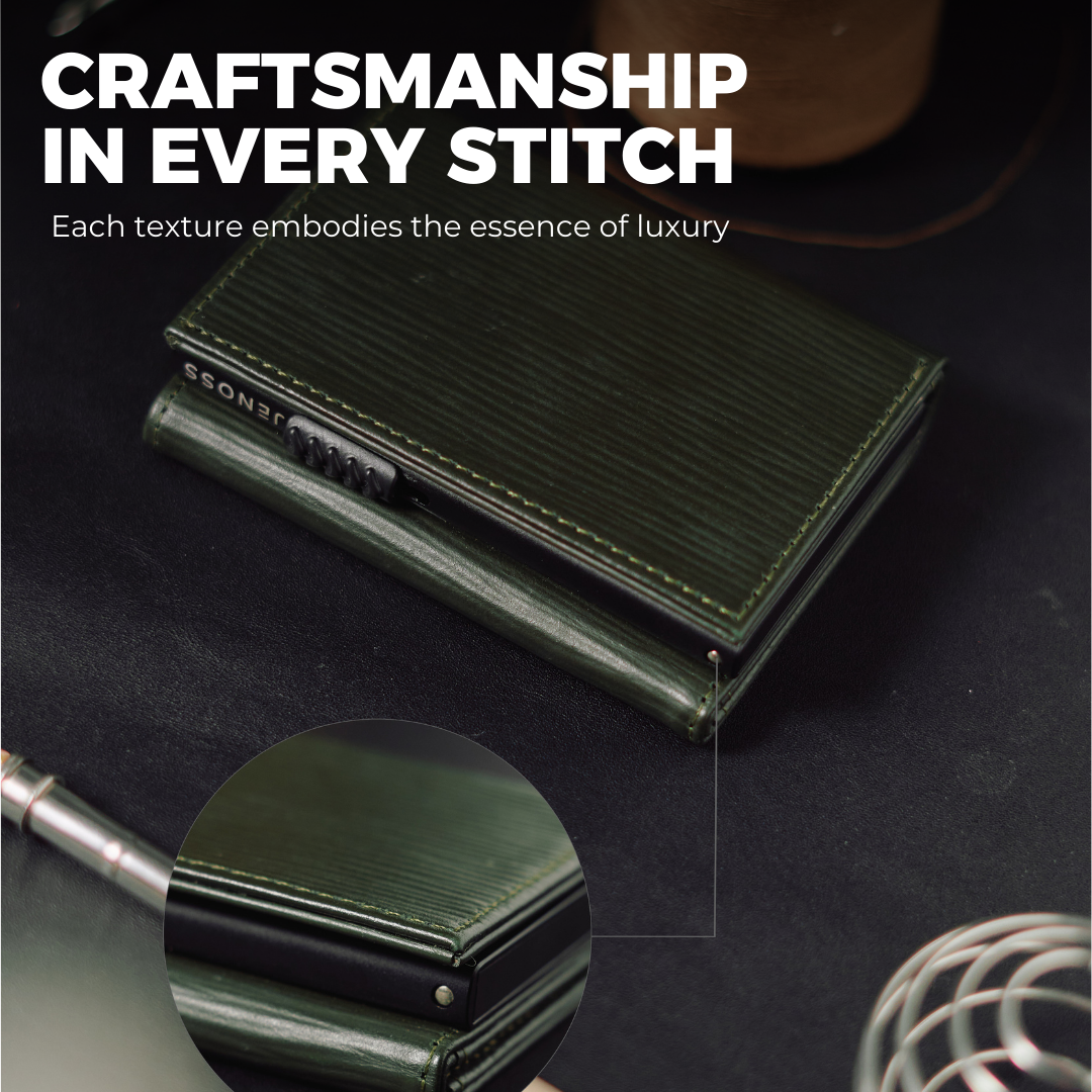 A: We don’t chase trends — we craft lasting value. Jenoss blends heritage leathercraft with patent-pending innovation to create wallets that feel timeless, work flawlessly, and age beautifully.